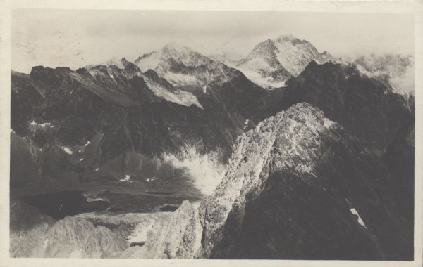 Pocztówka użyta w obiegu pocztowym, korespondencja. Logo wydawcy. Dodatkowo stempel:"P.P. CHATA U POPRADSKÉHO PLESA 1513 m.n.m.".