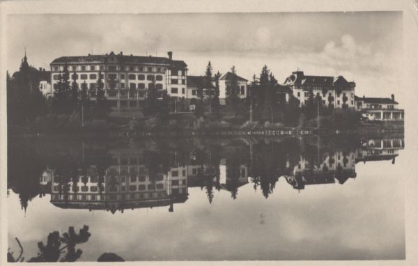Widok na zabudowania hotelu Hviezdoslav i Kriváň nad Szczyrbskim Jeziorem w miejscowości Szczyrbskie Jezioro.