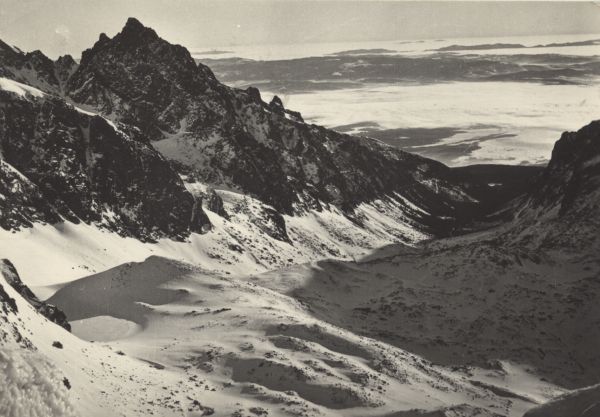 VYSOKÉ TATRY Pohľad zo Svišťového štítu (2382 m) dolu Veľkou Studenou dolinou. Vľavo Prostredný hrot (2440 m)