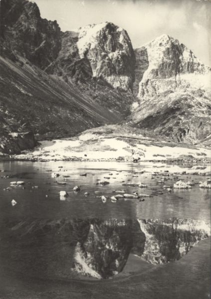 TATRY WYSOKIE. Widok z Doliny Staroleśnej na Baniastą Turnię i Małą Wysoką. Tytuł również w języku: niem., ang., fr.