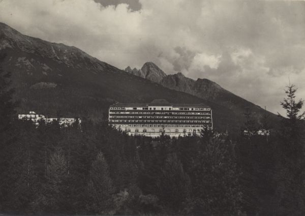 Budynek sanatoryjny w Nowym Smokowcu. W tle grupa Łomnicy.