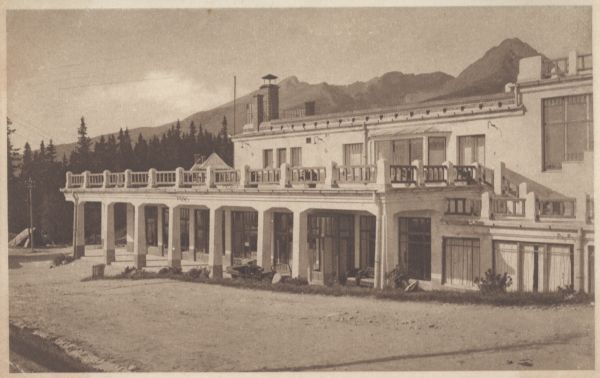 VYSOKÉ TATRY. 1. ©trbské Pleso: Kavárna, v pozadí Kriváň 2496 m a ®elízko 2414 m.