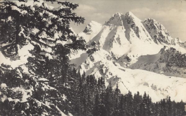 Widok na Wysok± w zimowej scenerii. Od lewej: Ciężki Szczyt, Wysoka i Smoczy Szczyt.
