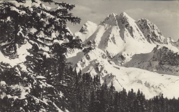 Widok na Wysok± w zimowej scenerii. Od lewej: Ciężki Szczyt, Wysoka i Smoczy Szczyt.