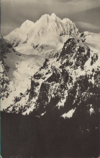 Zimowy pejzaż Tatr Wysokich. Widać: Ciężki Szczyt i Wysoką.