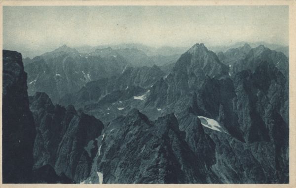 TATRY WYSOKIE. Widok ze szczytu Gerlacha, najwyższej góry Tatr Wysokich, w kierunku Wysokiej. Tytuł również w jêzyku: fr.