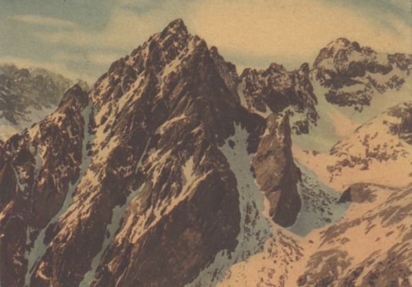 Tatrzański Park Narodowy [Słowacja] - widok z Łomnickiej Grani na Po¶redni± Grań. W tle Gerlach. Tytuł również w j. ros., ang., niem.
