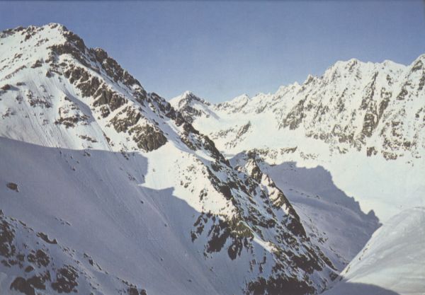 Szczyty nad dolin± Młynick± w zimie: Solisko, Szczyrbski Szczyt, Hlińska Turnia i Szatan.