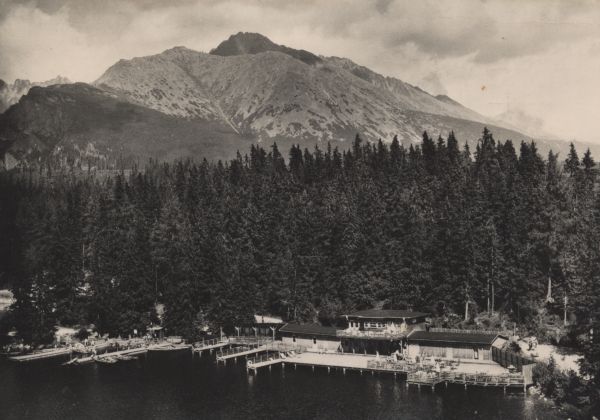 TATRZAŃSKI PARK NARODOWY [Słowacja]. Szczyrbskie Jezioro. Kąpielisko, w tle Tępa i Kończysta.
