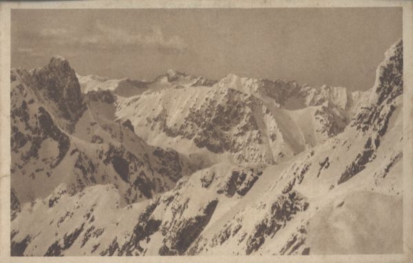 Zimowy widok z Rysów. Z lewej widoczny Mięguszowiecki Szczyt Wielki, w tle Świnica.