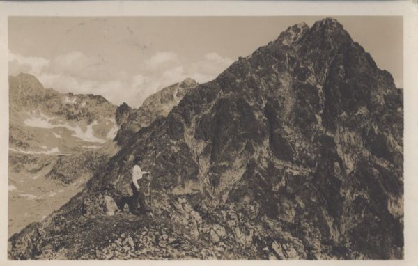 Turystka na Skrajnej Baszcie. W tle Szczyrbski Szczyt.