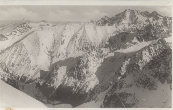 Vysoké Tatry - Pohµad z Rysov 2503 m na ®diarske vidly 2148 m Jahňačí ątít 2231 m. Ąadový 2630 m. Lomnický 2634 m.