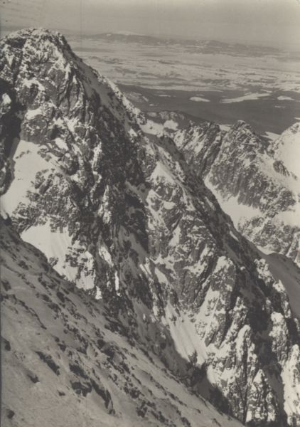 TATRANSKÝ NÁRODNÝ PARK. Pohµad z Lomnického ątítu (2632 m) na severozápad na Pyąný ątít (2623 m), vpravo Čierny ątít (2434 m).