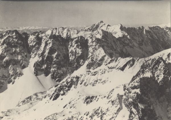 Tatry Wysokie - widok z Rysów na zachód: w tle Krywań. Tytuł również w j. ros., niem., ang.