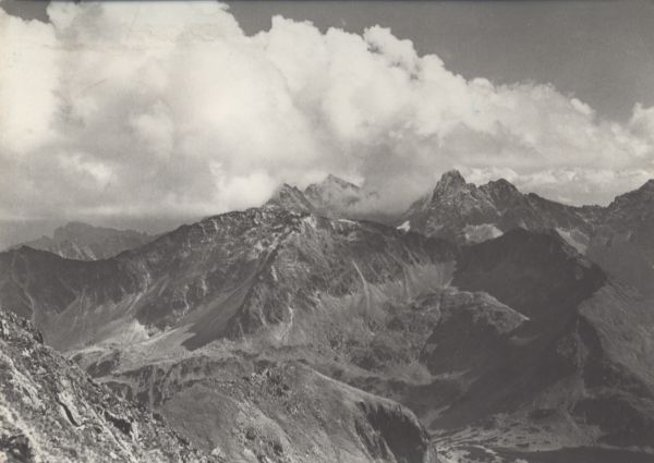 TATRANSKÝ NÁRODNÝ PARK. Pohµad zo Svinice ponad dolinu Platich stavov poµských (Czarny staw 1722 m) na Čubrinu (2376 m) a Kôprovský ątít (2370 m).