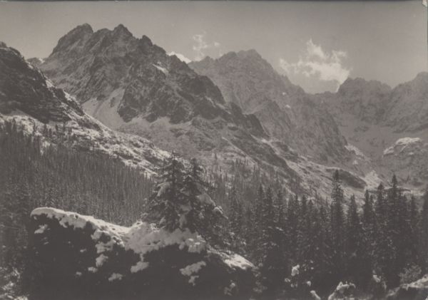 Zimowy widok z Doliny Białej Wody na południe: w przodzie ¦wistowe Turnie, w tle Batyżowiecki Szczyt i Kaczy Szczyt.
