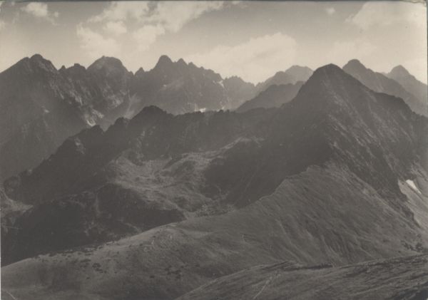 Pohµad na Lomnickú skupinu z Belanských Tatier. Od µava: Huncovský 2353 m, Keľmarský 2550 m, Lomnický 2634 m, Baranie Rohy 2536 m, v popredí tmavý Jahňací 2231 m, vµavo Kozí 2016 m, Kolový 2425 m a Ąadový ątít 2630 m.