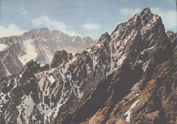 Tatrzański Park Narodowy [Słowacja] - Widok z Łomnickiej Grani na Po¶redni± Grań. Tytuł również w j. ros., ang., niem.