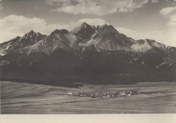 Vysoké Tatry od Malého Slavkova. Stredohrot 2440 m. Lomnickę čtít 2634 m KeŸmarskę čtít 2556 m.
