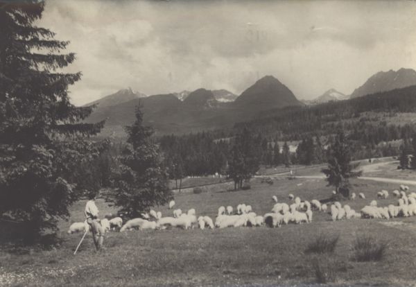 Owce pas±ce siê na ł±ce w Szczyrbie. W tle Krywań, Krótka, Ostra, Wielkie Solisko, Szczyrbski Szczyt i Skrajna Baszta.
