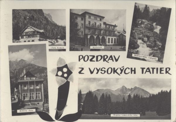 POZDRAV Z VYSOKÝCH TATIER. Chata Kamzík, Hrebienok, Studenovodské vodopády, Skupina Lomnického štítu, Bilíkova chata.