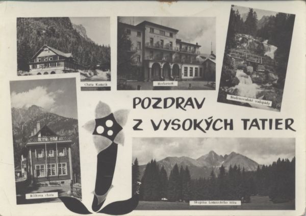 POZDRAV Z VYSOKÝCH TATIER. Chata Kamzík, Hrebienok, Studenovodské vodopády, Skupina Lomnického štítu, Bilíkova chata.