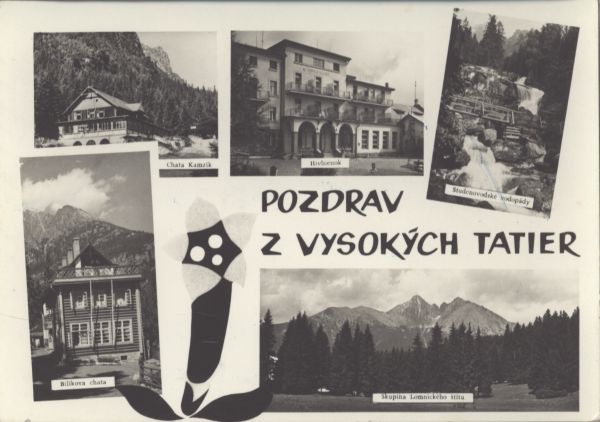 POZDRAV Z VYSOKÝCH TATIER. Chata Kamzík, Hrebienok, Studenovodské vodopády, Skupina Lomnického štítu, Bilíkova chata.