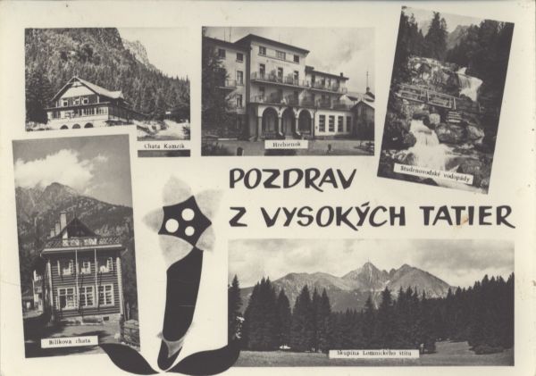 POZDRAV Z VYSOKÝCH TATIER. Chata Kamzík, Hrebienok, Studenovodské vodopády, Skupina Lomnického štítu, Bilíkova chata.