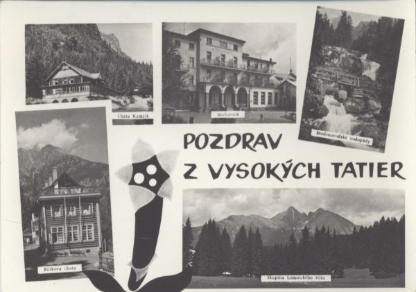 POZDRAV Z VYSOKÝCH TATIER. Chata Kamzík, Hrebienok, Studenovodské vodopády, Skupina Lomnického štítu, Bilíkova chata.