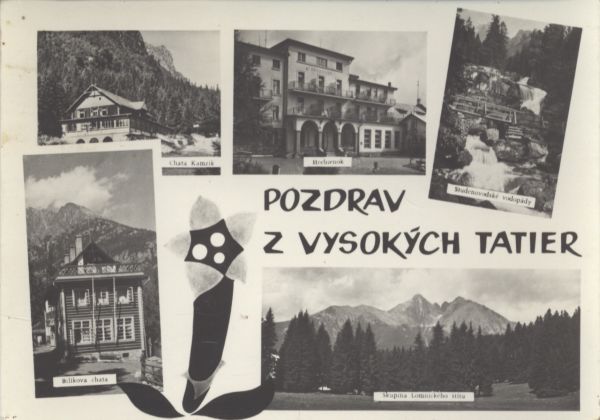 POZDRAV Z VYSOKÝCH TATIER. Chata Kamzík, Hrebienok, Studenovodské vodopády, Skupina Lomnického štítu, Bilíkova chata.