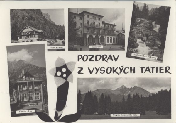 POZDRAV Z VYSOKÝCH TATIER. Chata Kamzík, Hrebienok, Studenovodské vodopády, Skupina Lomnického štítu, Bilíkova chata.