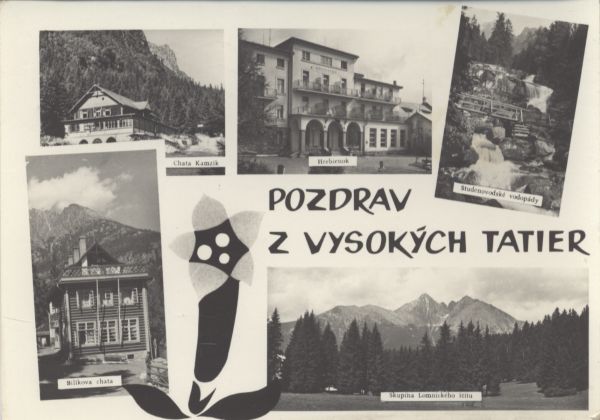 POZDRAV Z VYSOKÝCH TATIER. Chata Kamzík, Hrebienok, Studenovodské vodopády, Skupina Lomnického štítu, Bilíkova chata.