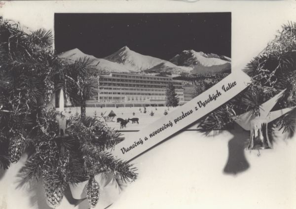 Na pocztówce znajduje się zdjęcie sanatorium nad którym wznoszą się ośnieżone tatrzańskie szczyty: Tępa, Kończysta i Gerlach. Przed budynkiem zwierzyna przy paśniku. Zdjęcie przepasane wstęgą z napisem tytułowym oraz przybrane po bokach świątecznymi stroikami z gałązek z bombkami i świeczką.