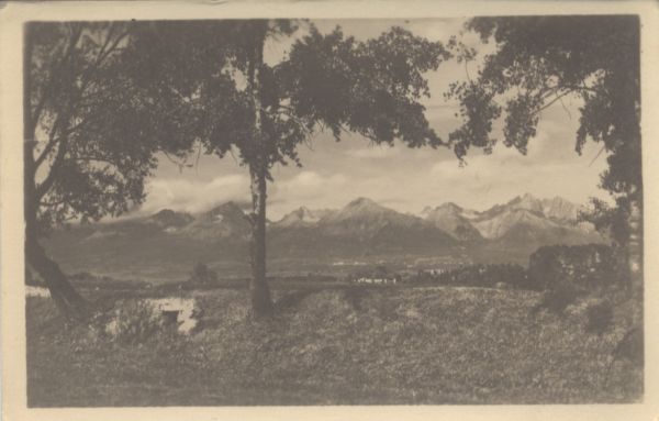 Widok z Popradu na panoramę Tatr Wysokich. Widoczne od lewej: Kończystą, Gerlach, Staroleśny Szczyt, Sławkowski Szczyt, Pośrednią Grań, Łomnica i Kieżmarski Szczyt.