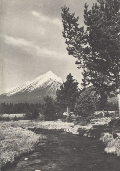 Na pierwszym planie rzeka. W tle Sławkowski Szczyt.