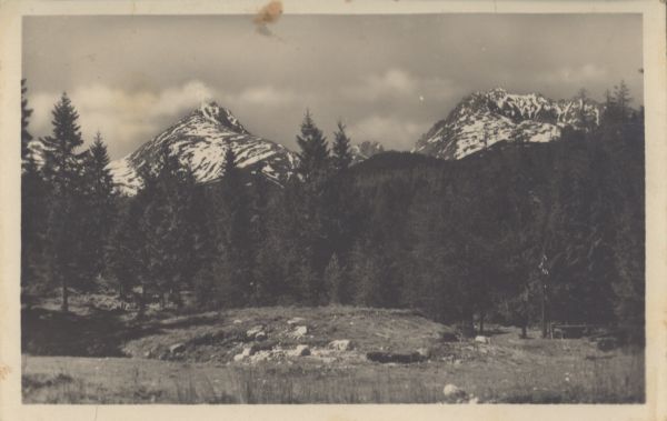 Widok na przyprószone śniegiem szczyty: Kończystą i Gerlach.