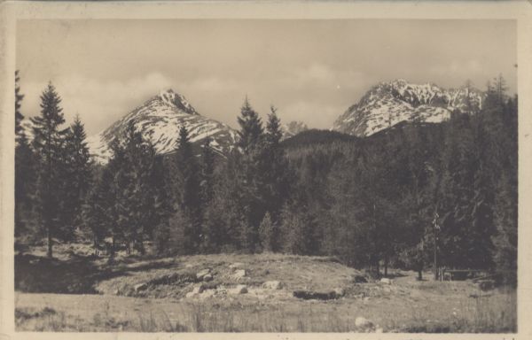 Widok na przyprószone śniegiem szczyty: Kończystą i Gerlach.