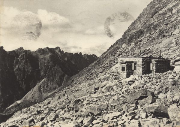 Schronisko pod Rysami. W tle widoczna grań Baszt nad Doliną Mięguszowiecką. Z tyłu Krywań.
