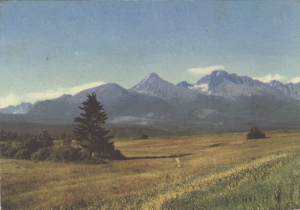 Tatry Wysokie. Od lewej: Tępa, Kończysta, Batyżowiecki Szczyt, Szczyt Stalina. Tytuł również w języku: ros., ang., niem.