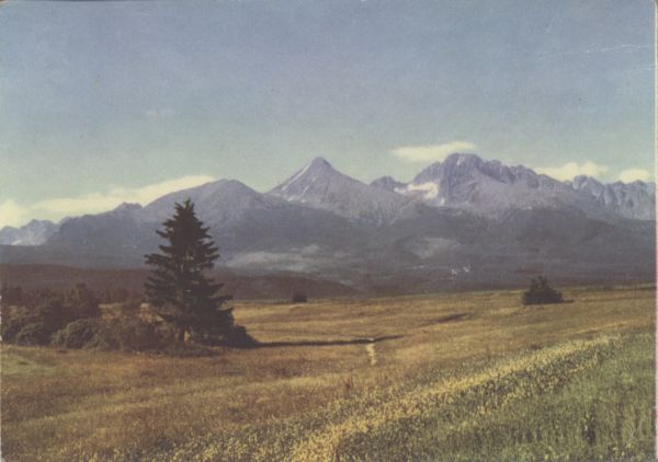 Tatry Wysokie. Od lewej: Tępa, Kończysta, Batyżowiecki Szczyt, Szczyt Stalina. Tytuł również w języku: ros., ang., niem.