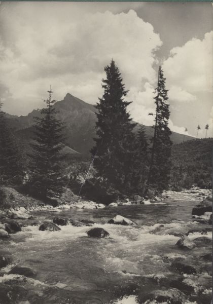 Na pierwszym planie rzeka Biała Liptowska płynąca przez miejscowość Podbańska. W tle Krywań.
