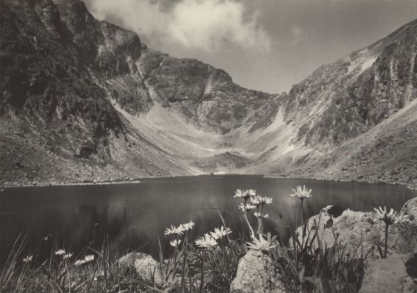 TATRZAŃSKI PARK NARODOWY [Słowacja]. Zielony Staw Ważecki. W lewo grań Krywania, przełęcz Szpara, w prawo grań Krótkiej.