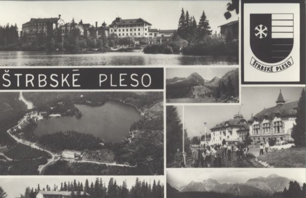 Widok na Kopę Popradzk±, Wysok±, Osterwę, Tęp± i Kończyst±. W prawym rogu u góry herb miasta, po lewej stronie napis: ©TRBSKÉ PLESO.