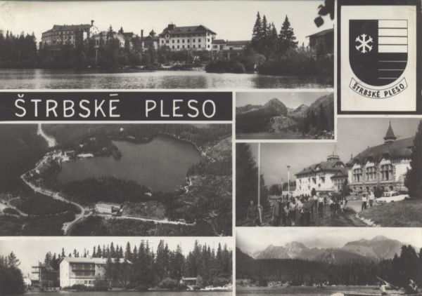 Widok na Kopę Popradzk±, Wysok±, Osterwę, Tęp± i Kończyst±. W prawym rogu u góry herb miasta, po lewej stronie napis: ©TRBSKÉ PLESO.