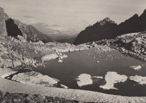 TATRZAŃSKI PARK NARODOWY. Mały Spiski Staw w Dolinie Małej Zimnej Wody. Widok w stronê Doliny Popradu, w lewo grań Łomnicy, w prawo Po¶rednia Grań.