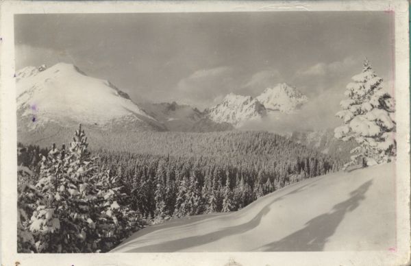 Vysoké Tatry - Štrbské pleso 1351 m n. m. Patria 2205 m. Kopky 2362 m. Vysoká 2565 m.