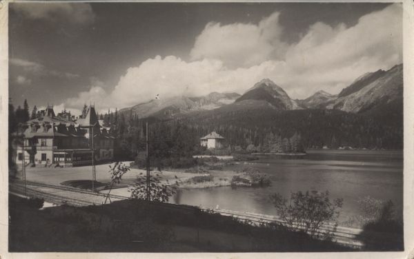 Szczyrbskie Jezioro. Dworzec kolejowy. W tle Solisko.