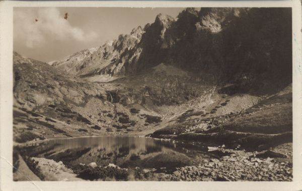 Widok na Wielicki Staw w Dolinie Wielickiej, nad nim Wielicka Siklawa. W tle Granaty Wielickie.