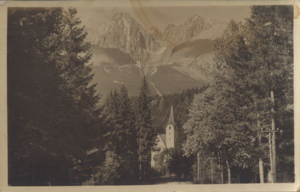 Tatrzańska Łomnica. Kościół ewangelicki. W tle Łomnica.