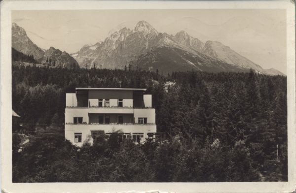 Górny Smokowiec. Dom Wypoczynkowy Partyzant. W tle Łomnica i Kieżmarski Szczyt.